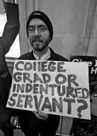 In my view, the growth in debt has ushered in a system of bondage similar in practical terms, as well as in principle, to indentured servitude. The analogy to indenture might seem exaggerated but actually has a great deal of resonance. Student debt binds individuals for a significant part of their future work lives. It encumbers job and life choices, and it permeates everyday experience with concern over the monthly chit. It also takes a page from indenture in the extensive brokerage system it has bred, from which more than four thousand banks take profit (even when the loans originate with the federal government, they are still serviced by banks, and banks service an escalating number of private loans). At its core, student debt is a labor issue, just as colonial indenture was, subsisting off the desire of those less privileged to gain better opportunities in exchange for their future labor. One of the goals of the planners of the US university system after World War II was to displace what they saw as an aristocracy; instead, they promoted equal opportunity in order to build America through its best talent. The new tide of student debt reinforces rather than dissolves the discriminations of class. Finally, it violates the spirit of American freedom in leading those less wealthy to bind their futures.